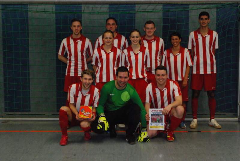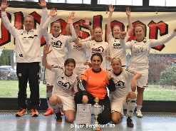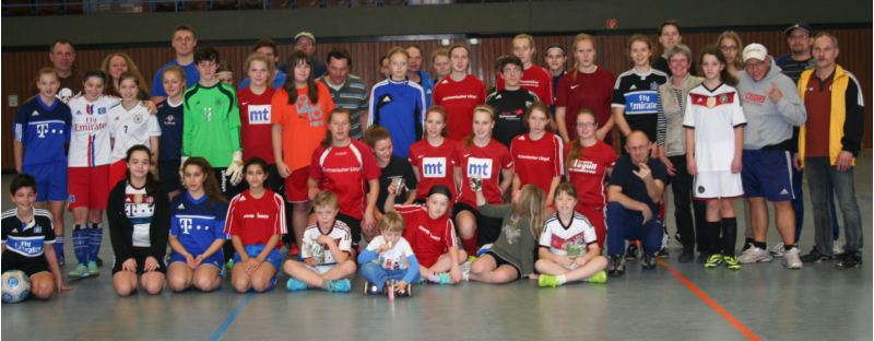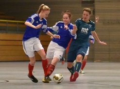 17.01.2015: Timo Heller Cup / Miexed-Cup 2015 Am Freitagabend folgten sieben Herrenteams der Einladung des VfL Oldesloe zum Miexed-Cup um den Timo Heller Cup. Aufgefüllt wurden sie mit Spielerinnen der Frauen des VfL Oldesloe. Auch einige Frauen des SV Meddewade spielten mit. Bedingung bei jedem Spiel war, dass mindestens immer eine Frau während der Partien mitspielte. Welche Frau für welches Teams spielte wurde erst kurz vor Beginn bekanntgegeben. Die Stormarnhalle war gut gefüllt und die Mannschaften schenkten sich nichts, wobei der Fair Play-Gedanke und der Spaß im Vordergrund stand. Das Finale hatte es nochmal in sich. Der Tralauer SV ging früh durch Vedat Bingöl in Führung, doch kurz vor der Schlussirene traf Julian Marx zum umjubelten Ausgleich. Im 9-m-Shout-Out konnte Tralau aber dann doch den Timo Heller Cup gewinnen. Ein Lob bekamen die Schiedsrichter Herbert Schönbeck und Günter Jonischkies, die beide für den SSV Grpßensee pfeifen. Doch auch das Turnier an sich bekam viel Lob. "Es gab überhaupt keine Anpassungsschwierigkeiten zwischen Frauen und Männern", "Echt nicht schlecht wie die Frauen spielen", "Eine tolle Sache", "Das hat unheimlich Spaß gemacht endlich mal Just for Fun zu kicken". Solche und viele andere Sätze bekam die Turnierleitung Michael Franke und Nico von Hausen zu hören und bestätigen diesen Mixed-Cup. Das Siegerteam vom Tralauer SV wurde von Inga Börmann, Natascha Zilesch und Jana Prestin komplettiert |