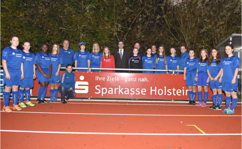 07.11.2014: Fusion: VfL Oldesloe-FFC Oldesloe Mit der Fusion zwischen dem VfL Oldesloe und dem FFC Oldesloe stieg beim VfL auch die Mannschaftsanzahl im weiblichen Fußball. Im Moment sind eine Frauenmannschaft und fünf Mädchenmannschaften im Spielbetrieb. „Das kostet selbstredend ganz schön Geld“, so der Jugendwart für den weiblichen Fußball Michael Franke. Verständlich denn die Frauen spielen ebenso in der Schleswig-Holstein-Liga wie die B I und C I. „Ausrüstung, lizensierte Trainer bezahlen sich nicht von selbst“, so die Obfrau für den weiblichen Fußball Carolin Relling. Die Sparkasse Holstein griff dem VfL Oldesloe mit einer Spende in Höhe von 1000 € hilfreich unter die Arme. Nun kamen die C-Mädchen samt Trainergespann, Oliver Ruddigkeit von der Sparkasse Holstein, Klaus-Dieter Klautke, stellv. Vorsitzender des VfL Oldesloe und der Jugendwart des weiblichen Fußballs im VfL, Michael Franke, zu einem Foto zusammen. Oliver Ruddigkeit zeigte sich begeistert von der Jugendarbeit des VfL. Michael Franke zählte die Mannschaftsanzahl im gesamten Jugendfußballbereich des VfL Oldesloe auf. „Das kann man nur mit treuen Sponsoren aufrechterhalten“, fügt Carolin Relling hinzu. Selbstredend freut sich der weibliche Fußball auch weiterhin auf Neuzugänge, sowohl im Frauen- als auch im Mädchenbereich. |