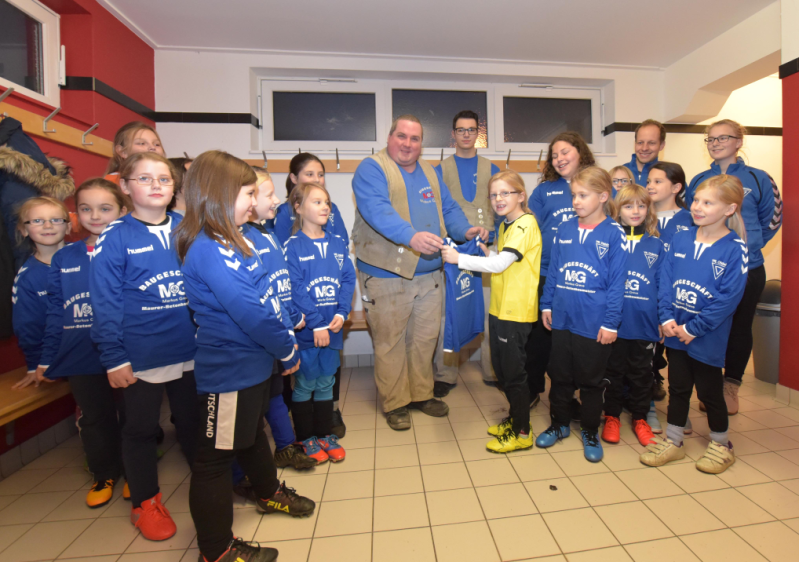 Die Freude war dementsprechend groß. „Eltern und Kinder sowie die Fußballsparte des VfL Oldesloe können bei dem Baugeschäft Greve nur Danke sagen“ so VfL-Pressewart Nico v. Hausen. Markus Greve ließ es sich zusammen mit seinem Lehrling Leon Hollatz nicht nehmen die Trikots zu übergeben. Nun steht dem Spaß am runden Leder nichts mehr im Wege und die Mädchen können in der Jungsstaffel zeigen, das auch sie mit dem Ball umgehen können.